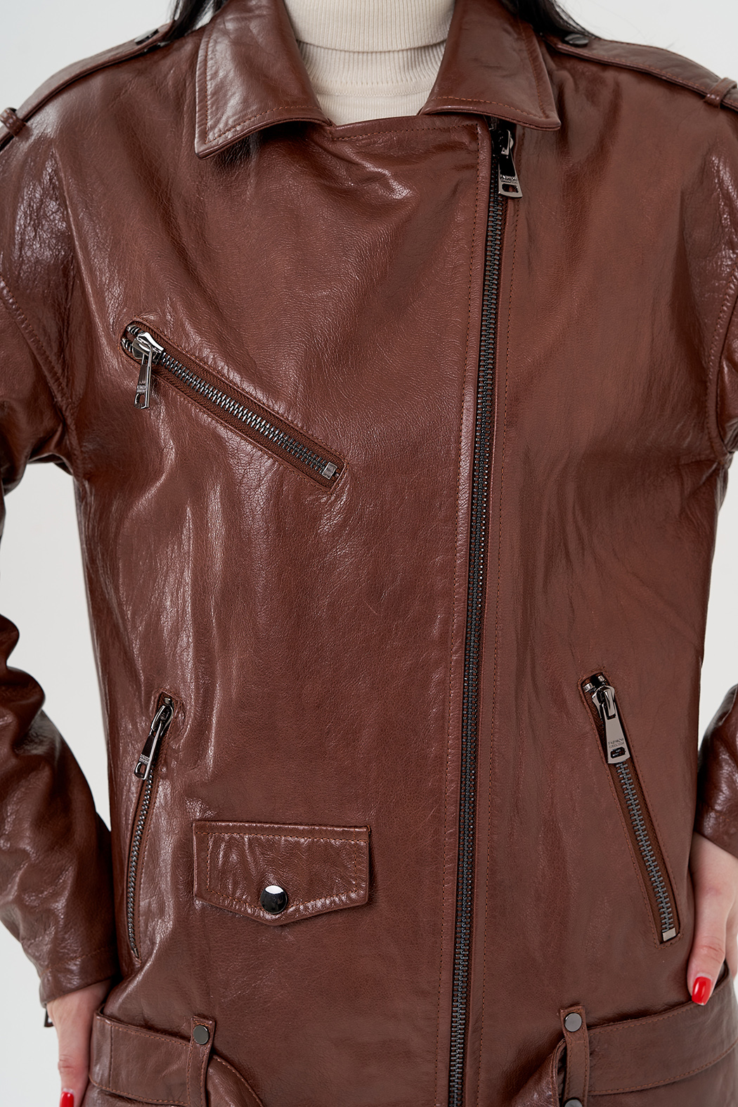Куртка косуха из натуральной кожи. Выполнена в насыщенном
