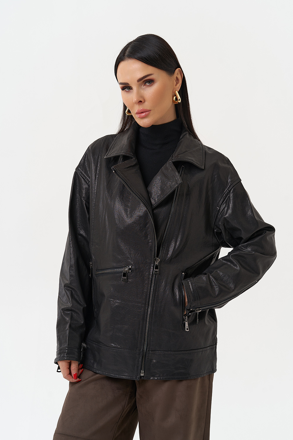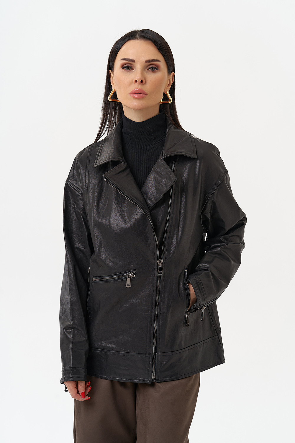 Женская косуха оверсайз черного цвета артикул uzno-sahalinsk29989 и другие товары категории Женские кожаные куртки и плащи доступны в каталоге интернет-магазина Малина Сибериан в Южно-Сахалинске по цене от 3933 ₽. Ознакомьтесь с подробными характеристиками и описанием, а также отзывами о данном товаре и нашей компании. Делайте правильный выбор и заказывайте Женские кожаные куртки и плащи онлайн.