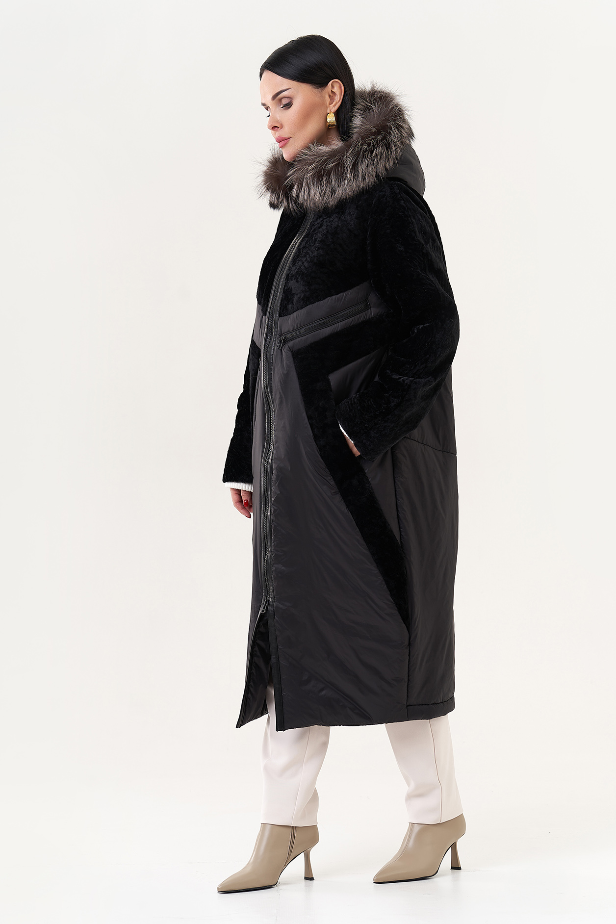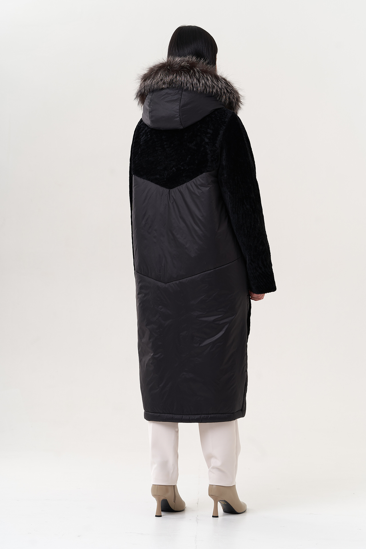 Вид ворота - капюшон, отделка - чернобурая лиса