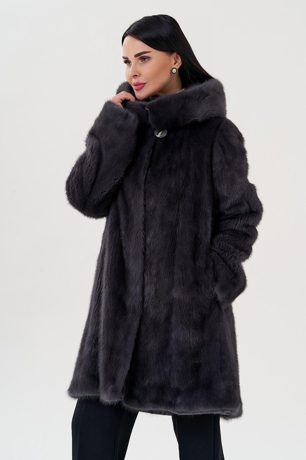 Шуба из меха норки в цвете графит. Покрой балетка